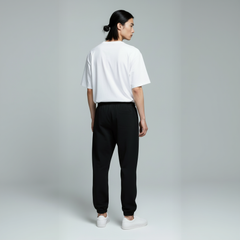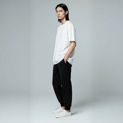 This sweatpants sits clean on the body while allowing natural movement. The ribbed cuffs and hem help maintain a balanced fit.