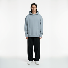 Designed with a relaxed, boxy silhouette and dropped shoulders, this hoodie sits clean on the body while allowing natural movement. A double-layered hood adds structure, while the ribbed cuffs and hem help maintain a balanced fit.