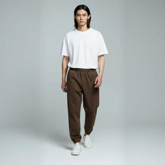 Crafted from premium 450 GSM. 100% cotton with a soft brushed fleece interior, these sweatpants feature a relaxed fit, elastic waistband with drawstring, elastic or open hem cuffs, and functional side pockets.