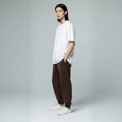 This sweatpants sits clean on the body while allowing natural movement. The ribbed cuffs and hem help maintain a balanced fit.