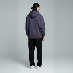 Designed with a relaxed, boxy silhouette and dropped shoulders, this hoodie sits clean on the body while allowing natural movement. A double-layered hood adds structure, while the ribbed cuffs and hem help maintain a balanced fit.