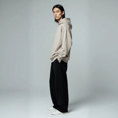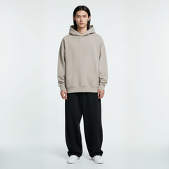 Designed with a relaxed, boxy silhouette and dropped shoulders, this hoodie sits clean on the body while allowing natural movement. A double-layered hood adds structure, while the ribbed cuffs and hem help maintain a balanced fit.